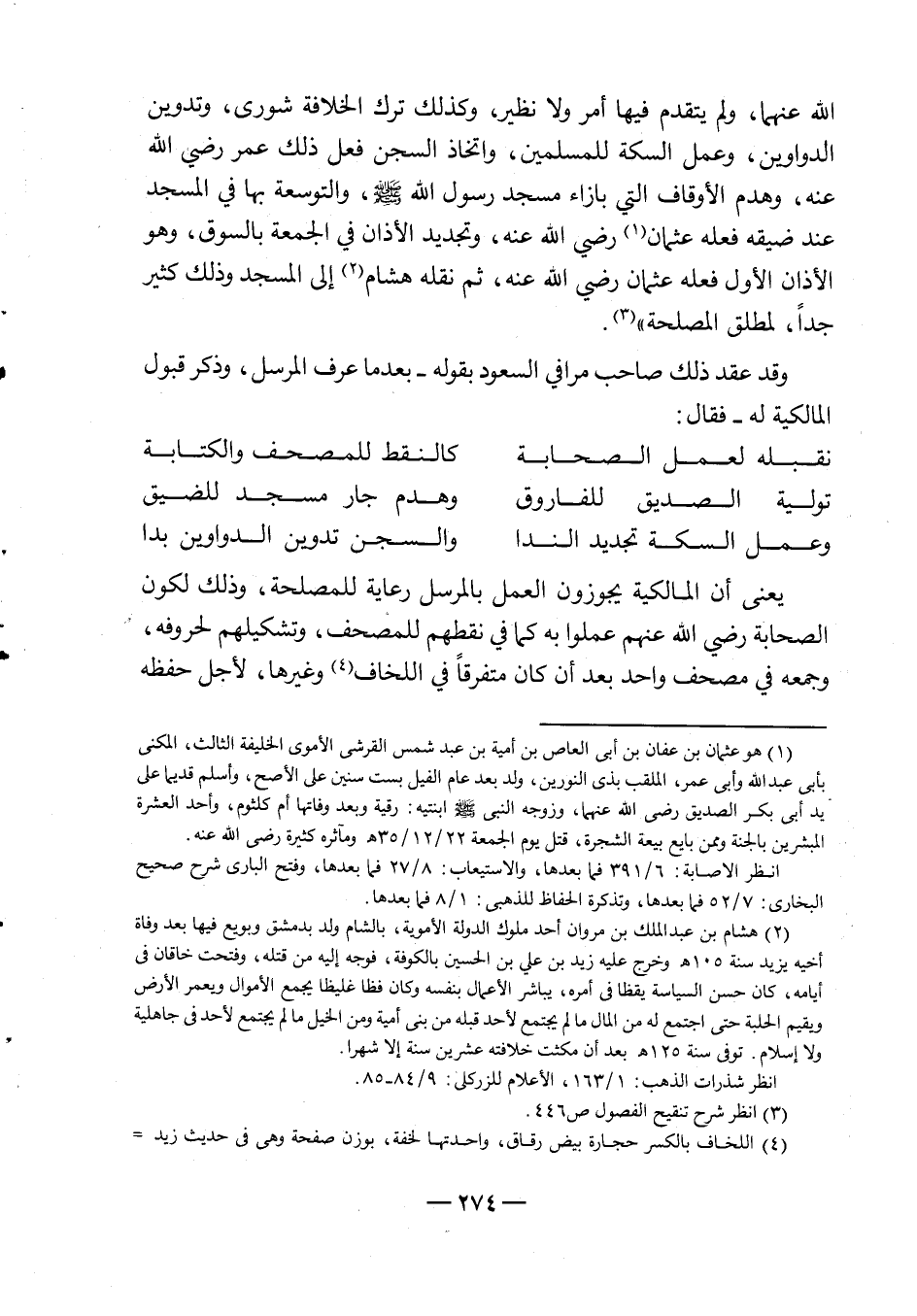 يعني أن المالكية يجوزون العمل بالمرسل رعاية للمصلحة، وذلك لكون الصحابة رضي الله عنهم عملوا به كما في نقطهم للمصحف، وتشكيلهم لحروفه، وجمعه في مصحف واحد بعد أن كان متفرقاً في اللخاف4 وغيرها، لأجل حفظه