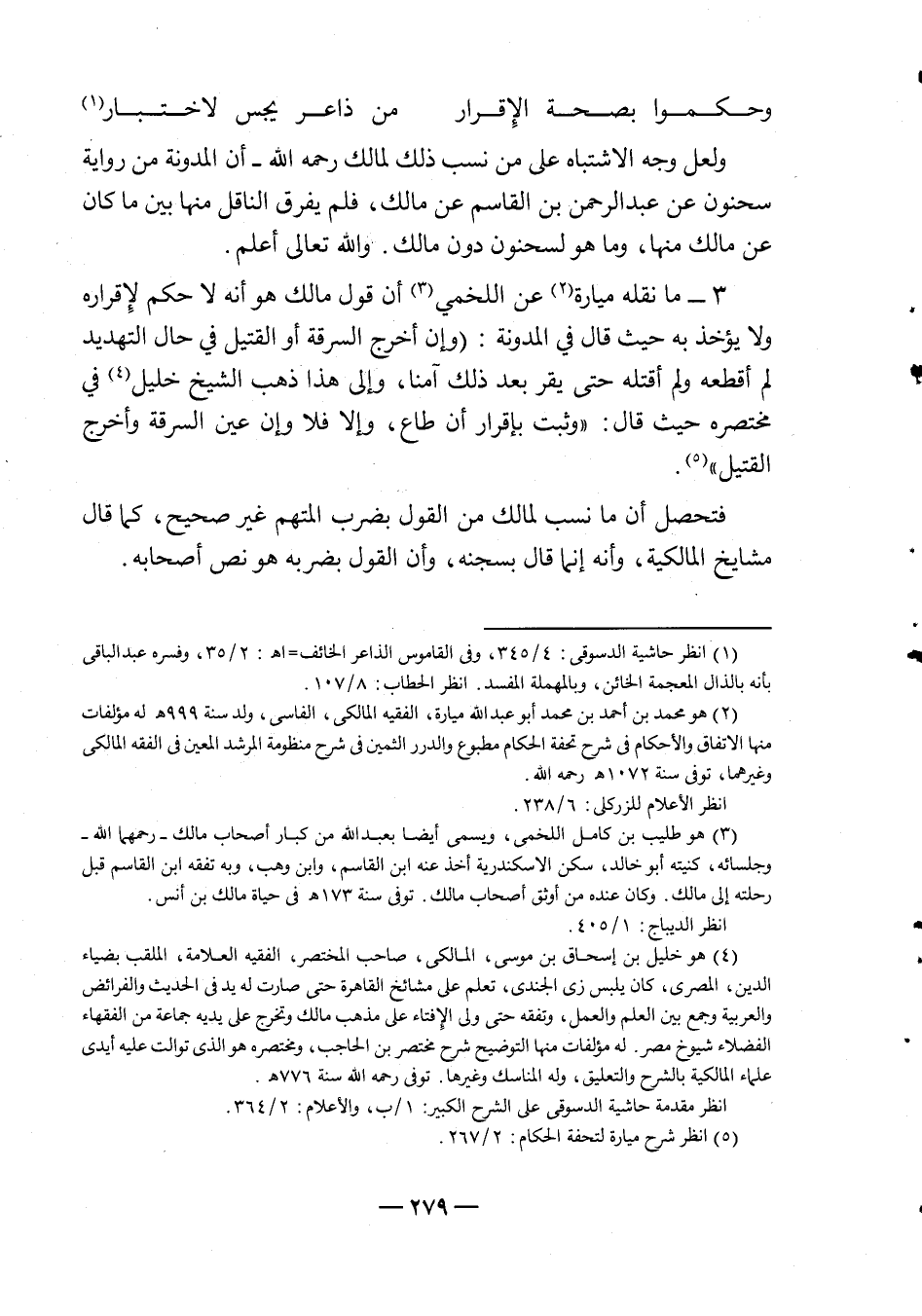 ولعل وجه الاشتباه على من نسب ذلك لمالك رحمه الله أن المدونة من رواية سحنون عن عبد الرحمن بن القاسم عن مالك، فلم يفرق الناقل منها بين ما كان عن مالك منها، وما هو لسحنون دون مالك، والله تعالى أعلم.