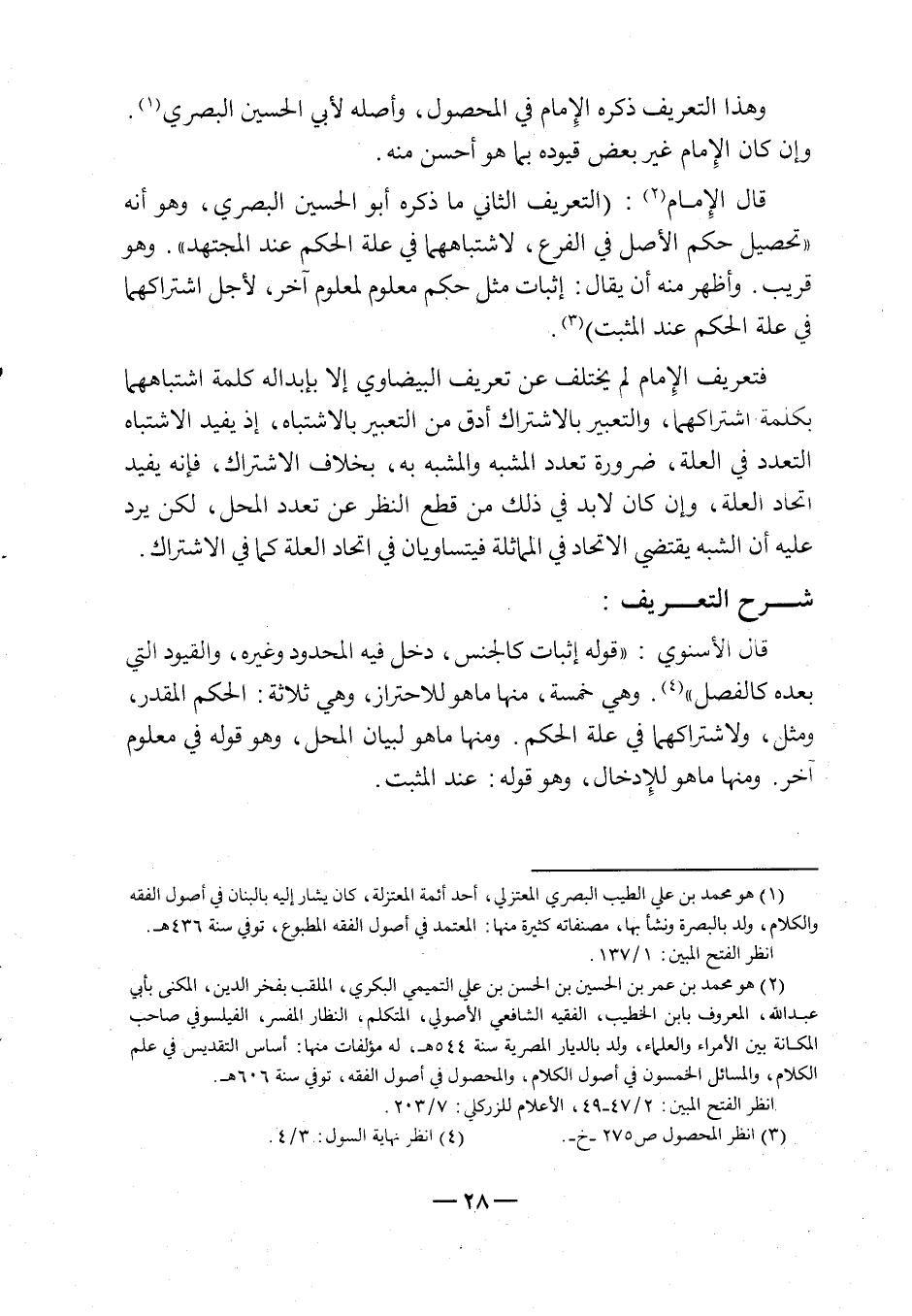 وهذا التعريف ذكره الإمام في المحصول، وأصله لأبي الحسين البصري1، وإن كان الإمام غير بعض قيوده بما هو أحسن منه.