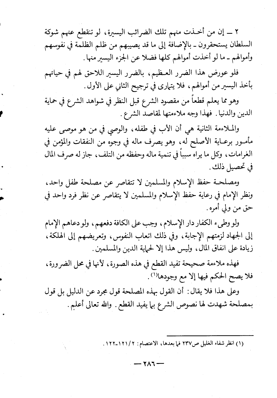 2 - إن من أخذت منهم تلك الضرائب اليسيرة، لو تنقطع عنهم شوكة السلطان يستحقرون - بالإضافة إلى ما قد يصيبهم من ظلم الظلمة في نفوسهم وأموالهم - ما لو أخذت أموالهم كلها فضلاً عن الجزء اليسير منها.