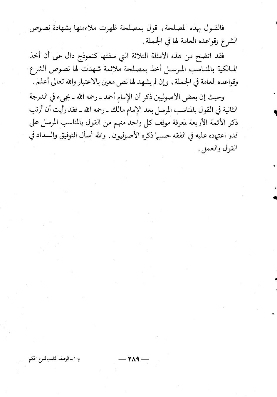 فالقول بهذه المصلحة، قول بمصلحة ظهرت ملاءمتها بشهادة نصوص الشرع وقواعده العامة لها في الجملة.