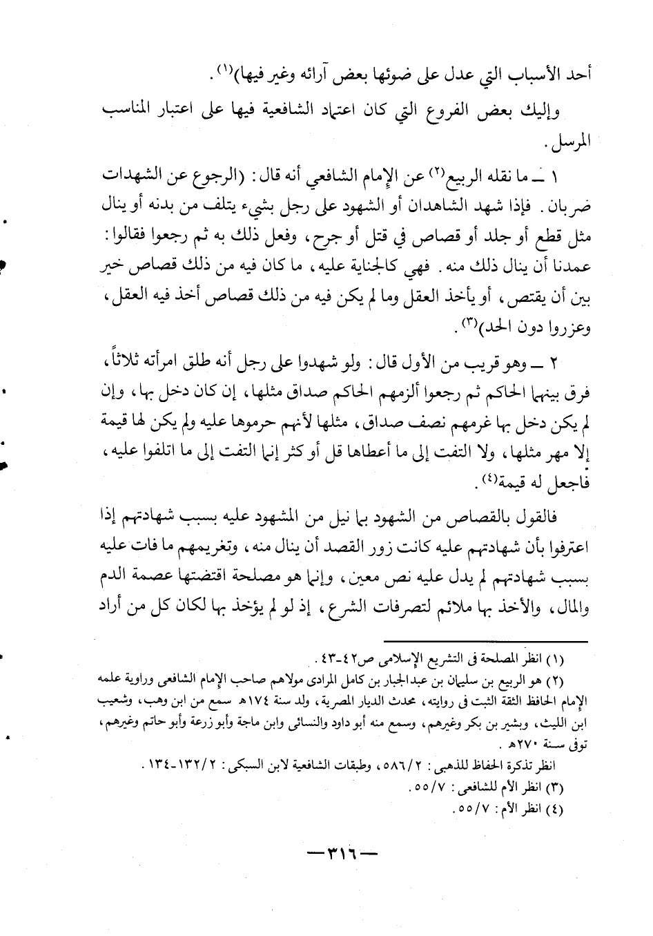 1 - ما نقله الربيع2 عن الإمام الشافعي أنه قال: "الرجوع عن الشهادات ضربان، فإذا شهد الشاهدان أو الشهود على رجل بشيء يتلف من بدنه أو ينال مثل قطع أو جلد أو قصاص في قتل أو جرح، وفعل ذلك به ثم رجعوا فقالوا: عمدنا أن ينال ذلك منه، فهي كالجناية عليه، ما كان فيه من ذلك قصاص خير بين أن يقتص، أو يأخذ العقل، وما لم يكن فيه قصاص أخذ فيه العقل وعزروا دون الحد"3.