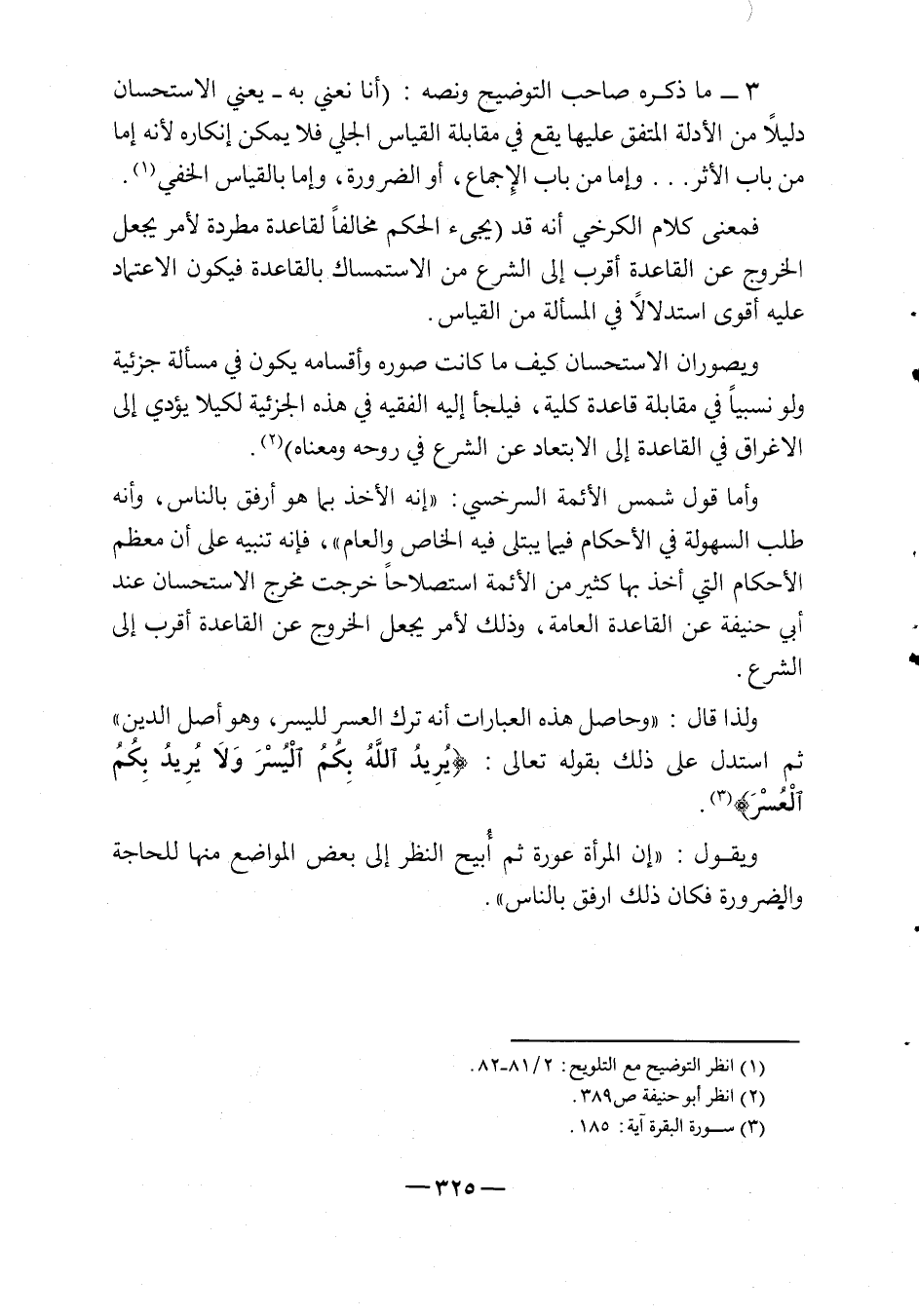 ولذا قال: "وحاصل هذه العبارات أنه ترك العسر لليسر، وهو أصل الدين" ثم استدل على ذلك بقوله تعالى: {يُرِيدُ اللهُ بِكُمُ الْيُسْرَ وَلاَ يُرِيدُ بِكُمُ الْعُسْرَ} 3.