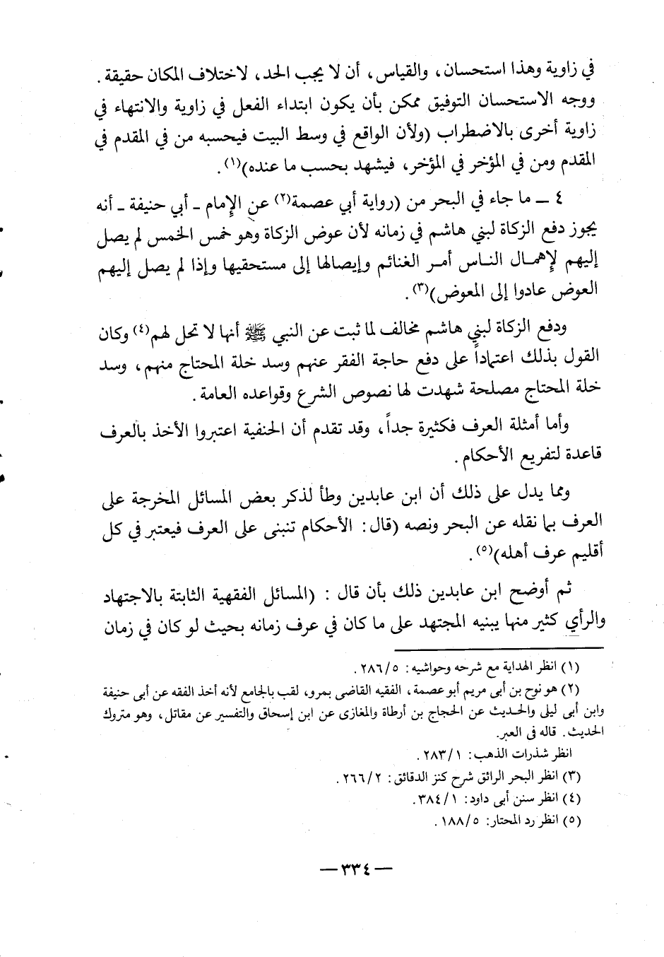 ومما يدل على ذلك أن ابن عابدين وطأ لذكر بعض المسائل المخرجة على العرف بما نقله عن البحر ونصه "قال: الأحكام تنبني على العرف فيتعبر في كل أقليم عرف أهله"5.