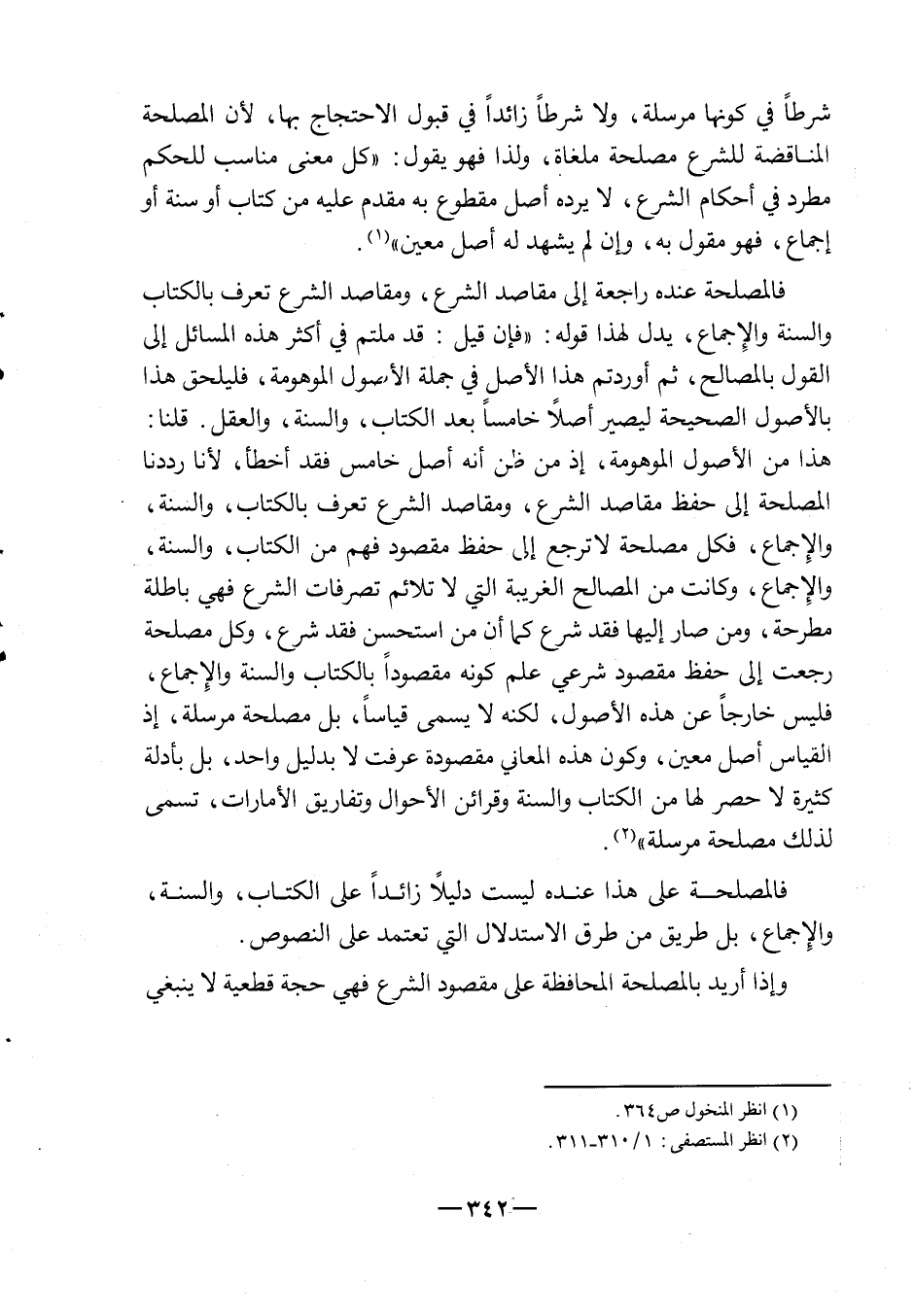 فالمصلحة على هذا عنده ليست دليلاً زائداً على الكتاب والسنة والإجماع، بل طريق من طرق الاستدلال التي تعتمد على النصوص.