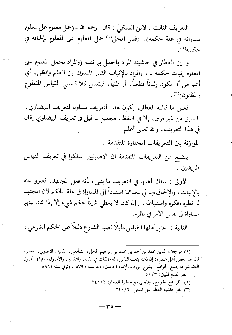 2 انظر: جمع الجوامع، والمحلى مع حاشية العطار 2/240.
