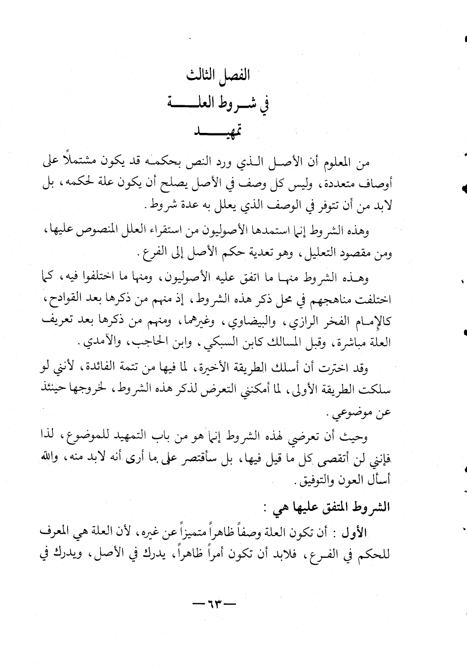 وقد اخترت أن أسلك الطريقة الأخيرة، لما فيها من تتمة الفائدة، لأنني لو سلكت الطريقة الأولى، لما أمكنني التعرض لذكر هذه الشروط، لخروجها حينئذ عن موضوعي.