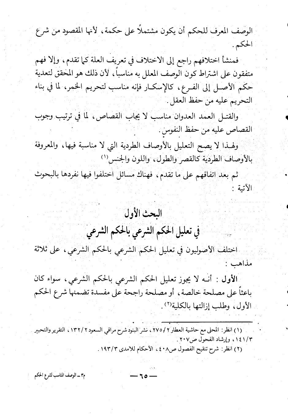 المبحث الأول في تعليل الحكم الشرعي بالحكم الشرعي