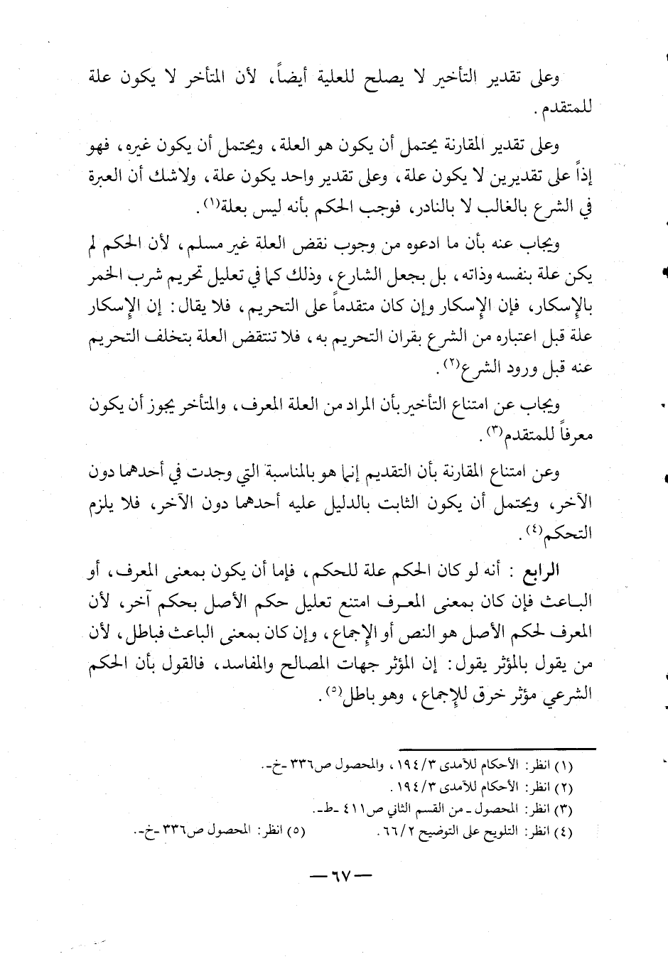 ويجاب عن امتناع التأخير بأن المراد من العلة المعرف، والمتأخر يجوز أن يكون معرفاً للمتقدم3.