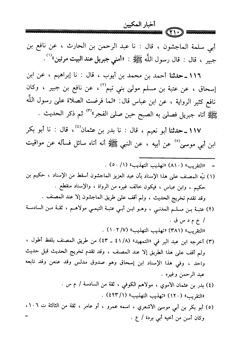 ١١٦ - حَدثنَا أَحْمد بن مُحَمَّد بن أَيُّوب، قَالَ: نَا إِبْرَاهِيم، عَن ابْن إِسْحَاق، عَن عتبَة بن مُسلم مولى بني تيم، عَن نَافِع بن جُبَير، وَكَانَ نَافِع كثير الرِّوَايَة، عَن ابْن عَبَّاس قَالَ: " لما فرضت الصَّلَاة على رَسُول الله صلى الله عَلَيْهِ وَسلم أَتَاهُ جِبْرِيل فصلى بِهِ الصُّبْح حِين صلى الْفجْر " ثمَّ ذكر الحَدِيث.