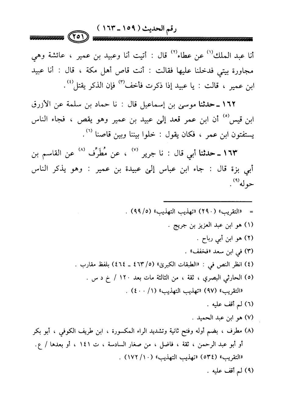 ١٦٣ - حَدثنَا أبي قَالَ: نَا جرير عَن مطَرِّف عَن الْقَاسِم بن أبي بزَّة قَالَ: جَاءَ ابْن عَبَّاس إِلَى عُبَيْدَة بن عُمَيْر: وَهُوَ يذكر النَّاس حوله.