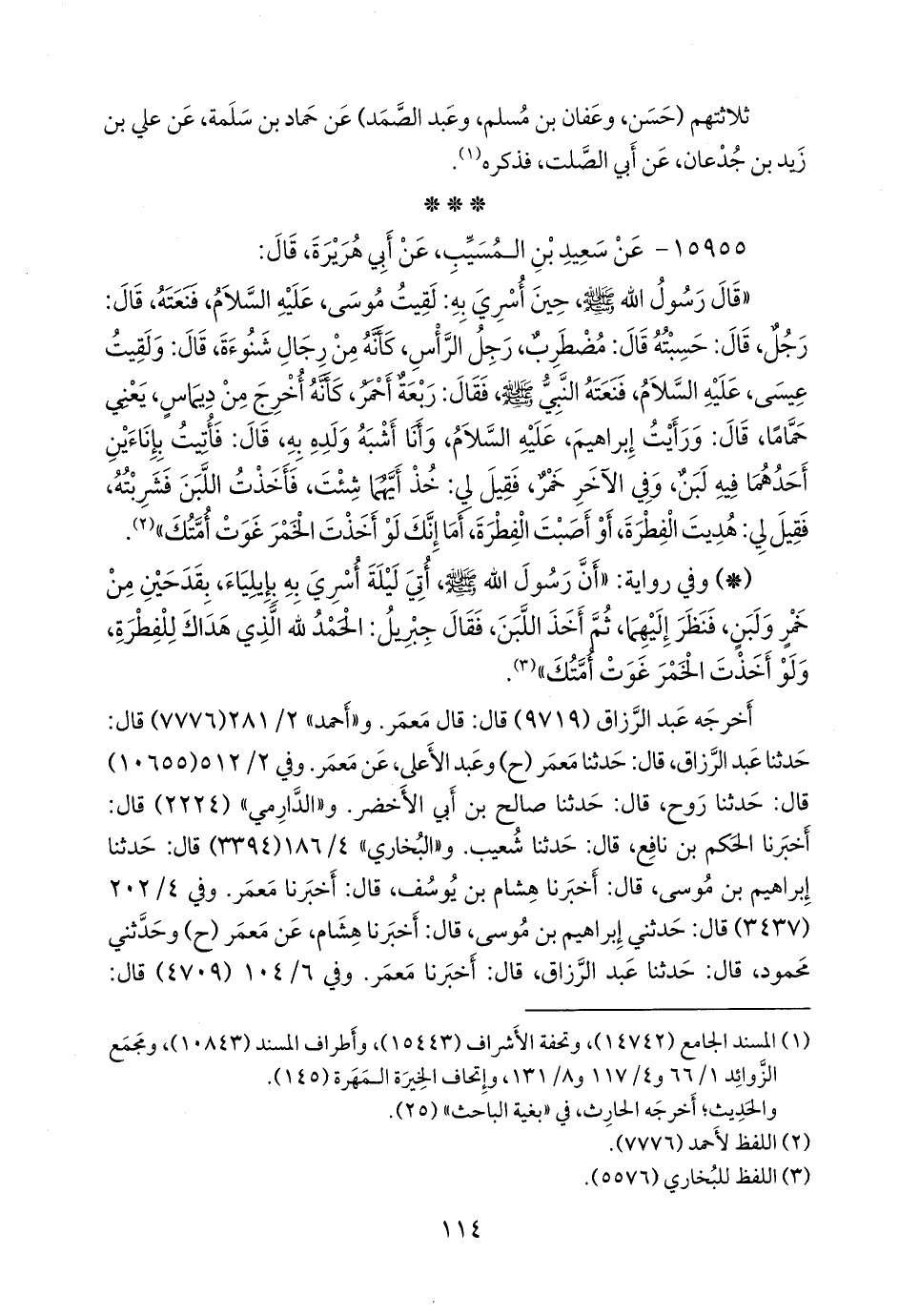 أخرجه عبد الرزاق (٩٧١٩) قال: قال معمر. و «أحمد» ٢/ ٢٨١ (٧٧٧٦) قال: حدثنا عبد الرزاق، قال: حدثنا مَعمَر (ح) وعبد الأعلى، عن معمر. وفي ٢/ ٥١٢ (١٠٦٥٥) قال: حدثنا روح، قال: حدثنا صالح بن أبي الأخضر. و «الدَّارِمي» (٢٢٢٤) قال: أخبرنا الحكم بن نافع، قال: حدثنا شعيب. و «البخاري» ٤/ ١٨٦ (٣٣٩٤) قال: حدثنا إبراهيم بن موسى، قال: أخبرنا هشام بن يوسف، قال: أخبرنا معمر. وفي ٤/ ٢٠٢ (٣٤٣٧) قال: حدثني إبراهيم بن موسى، قال: أخبرنا هشام، عن معمر (ح) وحدثني محمود، قال: حدثنا عبد الرزاق، قال: أخبرنا مَعمَر. وفي ٦/ ١٠٤ (٤٧٠٩) قال: