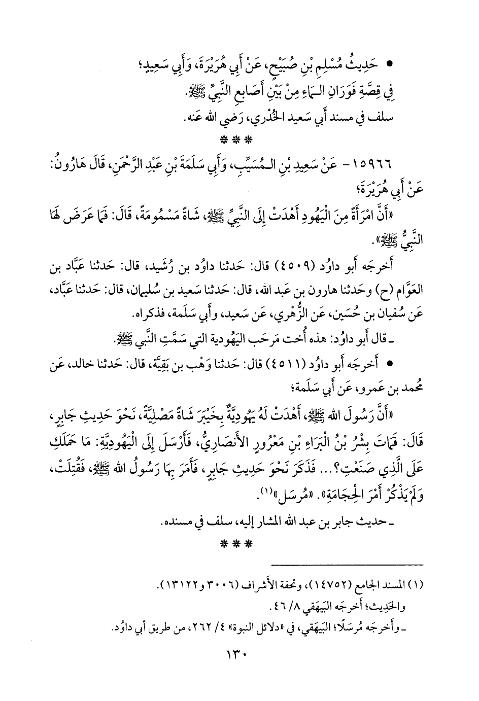- قال أَبو داود: هذه أخت مرحب اليهودية التي سمت النبي صَلى الله عَليه وسَلم.