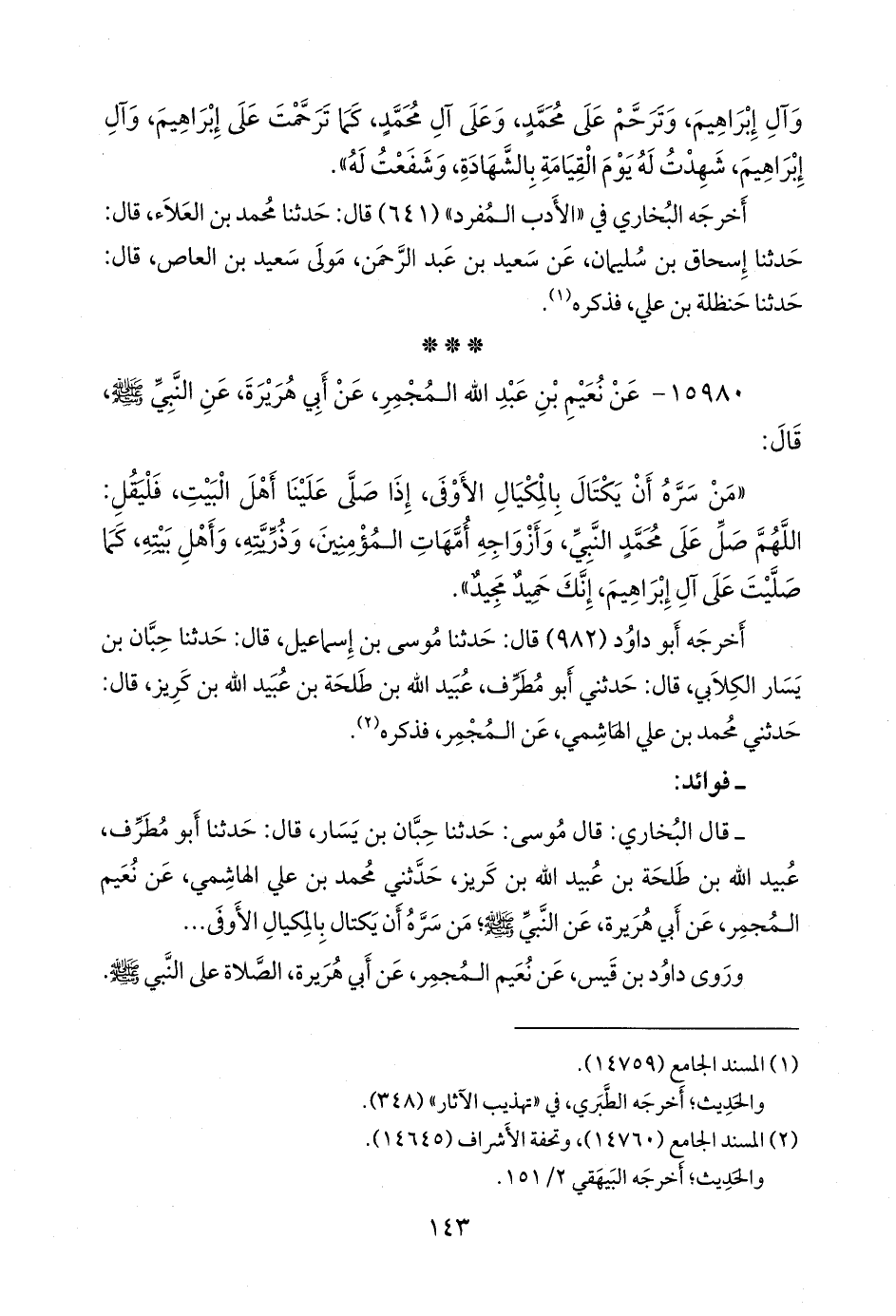 وقال: قال داود بن قيس الفراء: عن نعيم المجمر، عن أبي هريرة؛ أنهم سألوا النبي صَلى الله عَليه وسَلم كيف نصلي عليك؟.