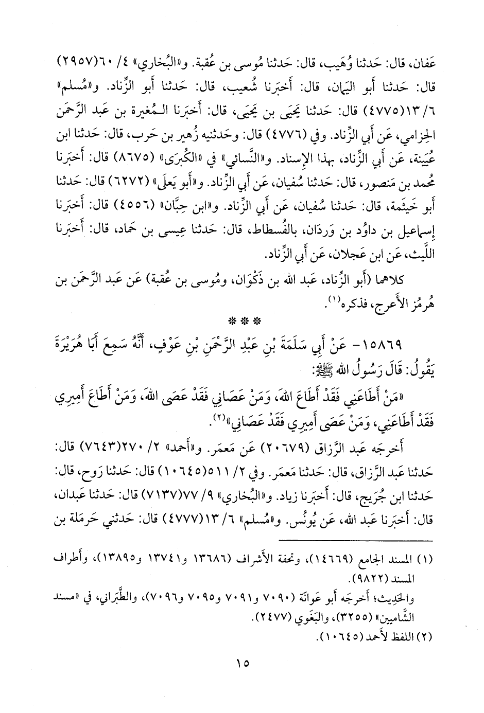 (¬٢) المسند الجامع (١٤٦٧٠)، وتحفة الأشراف (١٥١٣٨ و ١٥٢٦٢ و ١٥٣١٩)، وأطراف المسند (١٠٦٧٠).