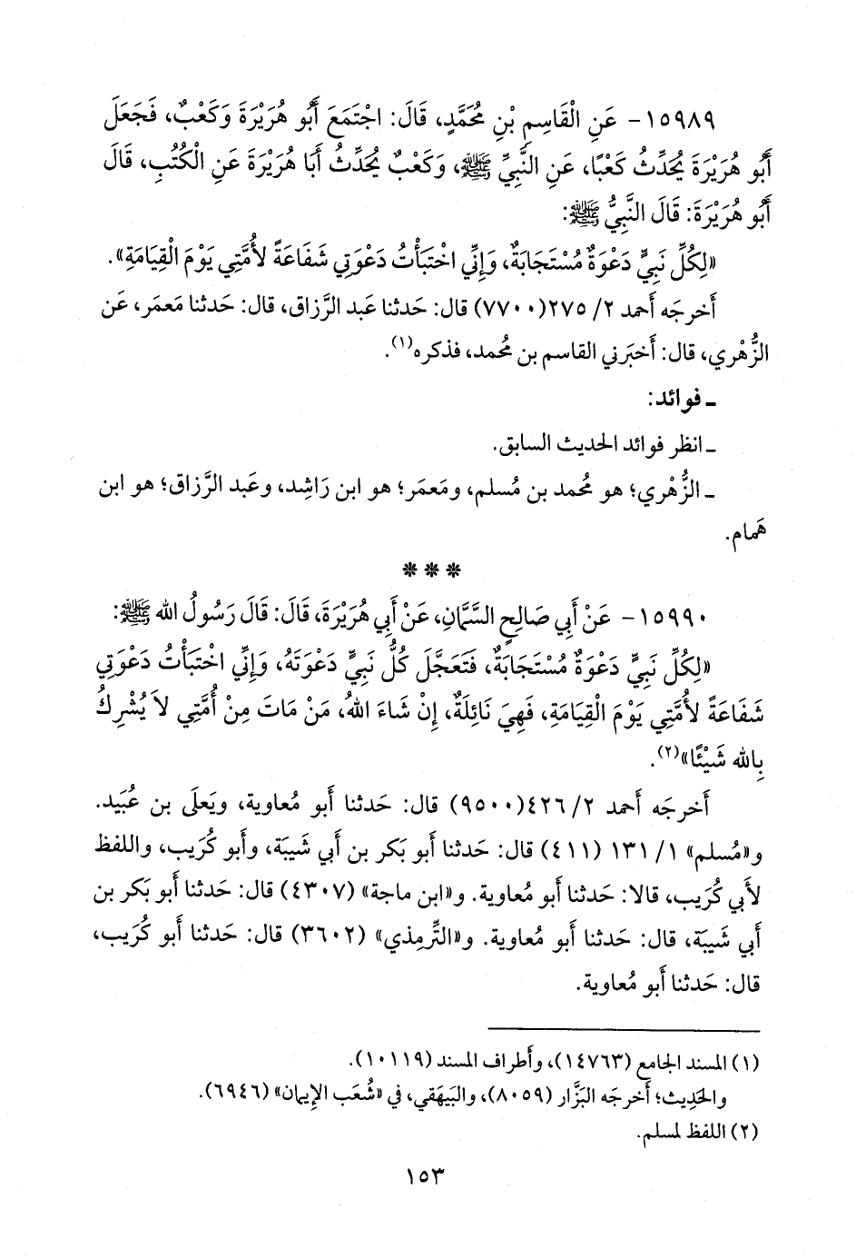 ١٥٩٨٩ - عن القاسم بن محمد، قال: اجتمع أَبو هريرة وكعب، فجعل أَبو هريرة يحدث كعبا، عن النبي صَلى الله عَليه وسَلم وكعب يحدث أبا هريرة عن الكتب، قال أَبو هريرة: قال النبي صَلى الله عَليه وسَلم: