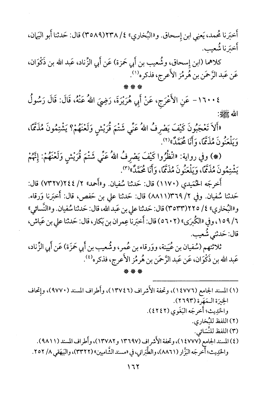 ثلاثتهم (سفيان بن عُيينة، وورقاء بن عمر، وشعيب بن أبي حمزة) عن أبي الزناد عبد الله بن ذكوان، عن عبد الرَّحمَن بن هُرمُز الأعرج، فذكره (¬٣).