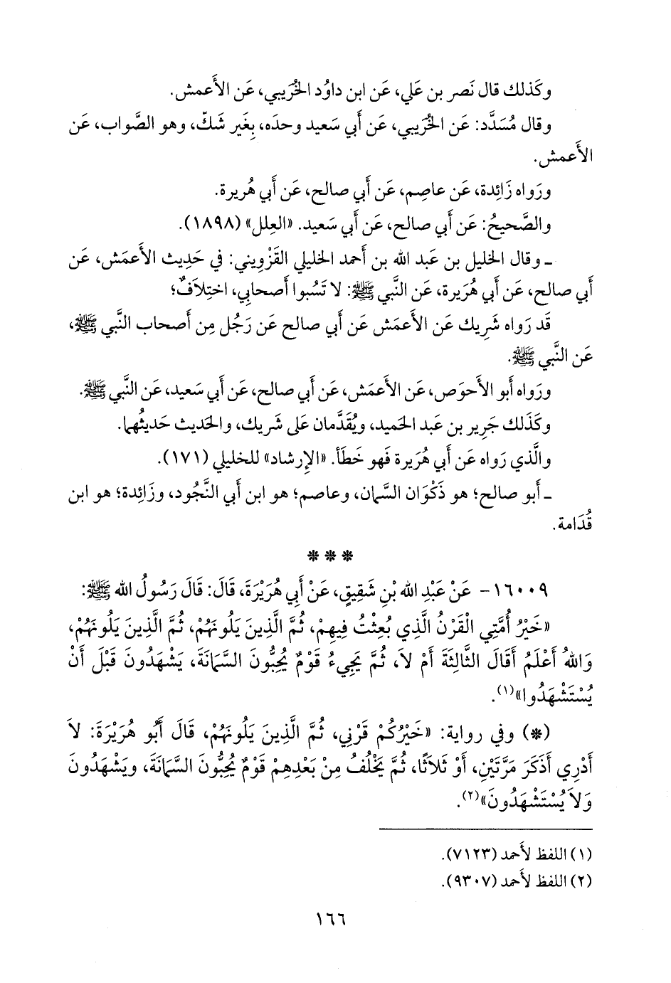 - وفي رواية: «خيركم قرني، ثم الذين يلونهم، قال أَبو هريرة: لا أدري أذكر مرتين، أو ثلاثا، ثم يخلف من بعدهم قوم يحبون السمانة، ويشهدون ولا يستشهدون» (¬٢).