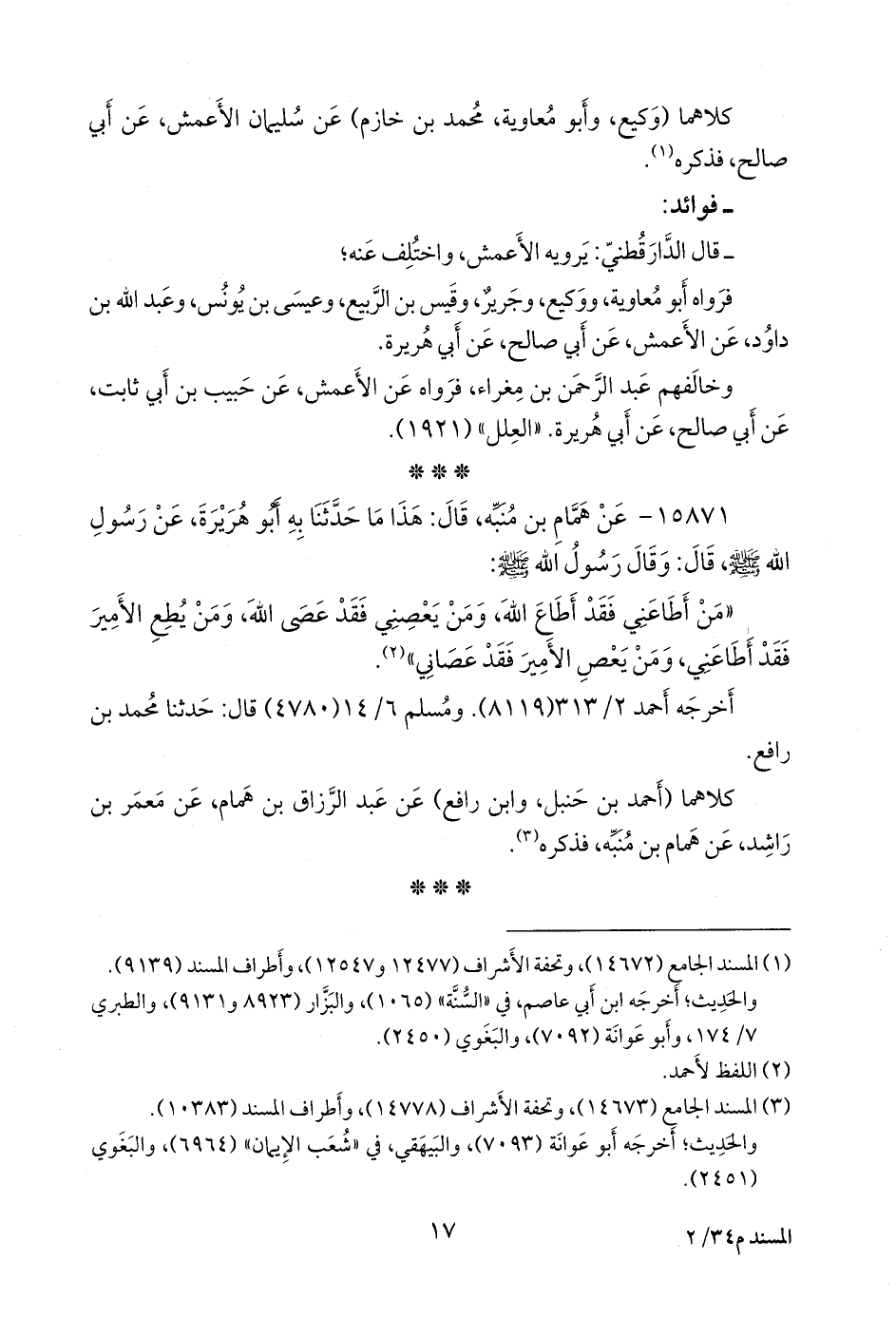 (¬٢) المسند الجامع (١٤٦٧٣)، وتحفة الأشراف (١٤٧٧٨)، وأطراف المسند (١٠٣٨٣).