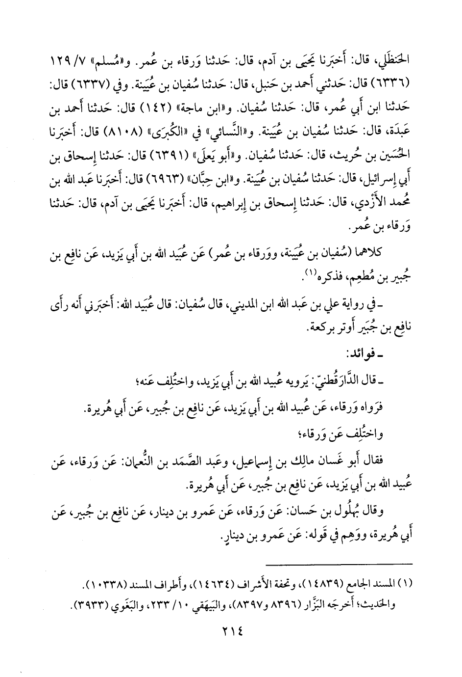 فقال أَبو غسان مالك بن إسماعيل، وعبد الصمد بن النعمان: عن ورقاء، عن عبيد الله بن أبي يزيد، عن نافع بن جبير، عن أبي هريرة.