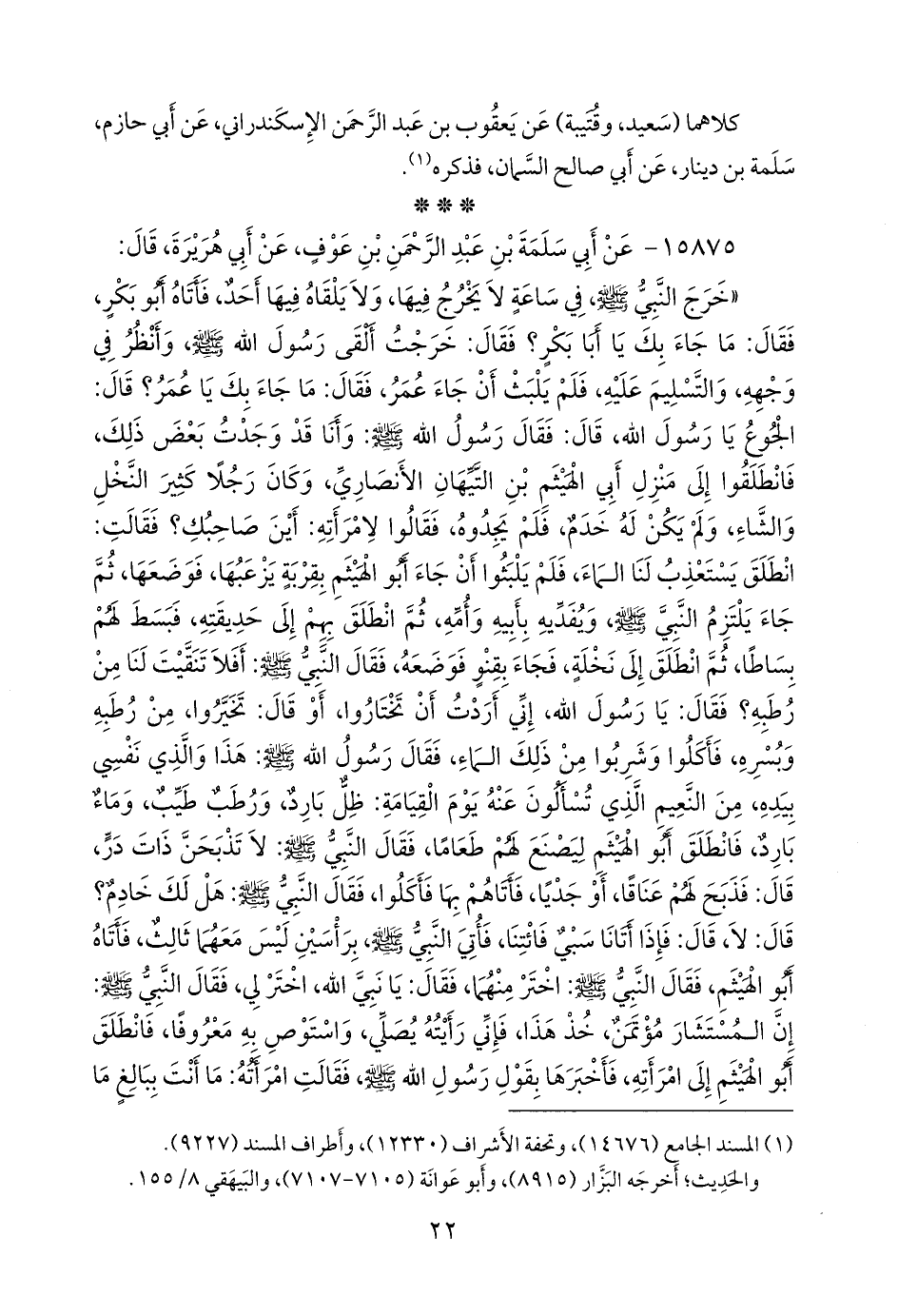 ١٥٨٧٥ - عن أبي سلمة بن عبد الرَّحمَن بن عوف، عن أبي هريرة، قال: