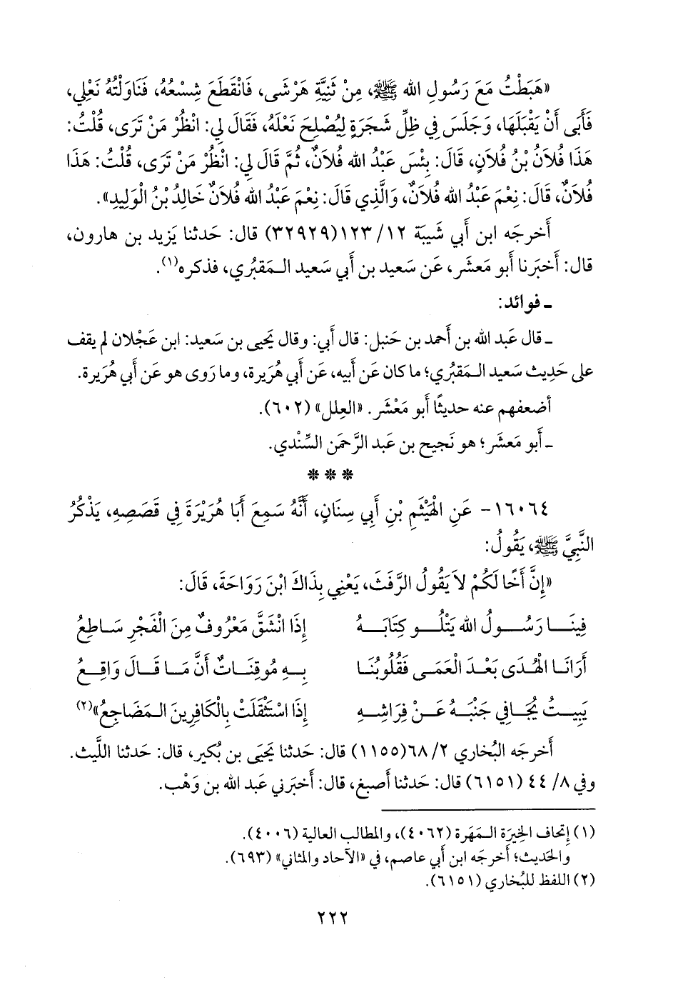 - قلنا: إِسناده ضعيفٌ؛ أَبو مَعشَر؛ هو نَجيح بن عبد الرَّحمَن السِّنْدي المدني، ليس بثقة. انظر فوائد الحديث رقم (١٢٥٤١).