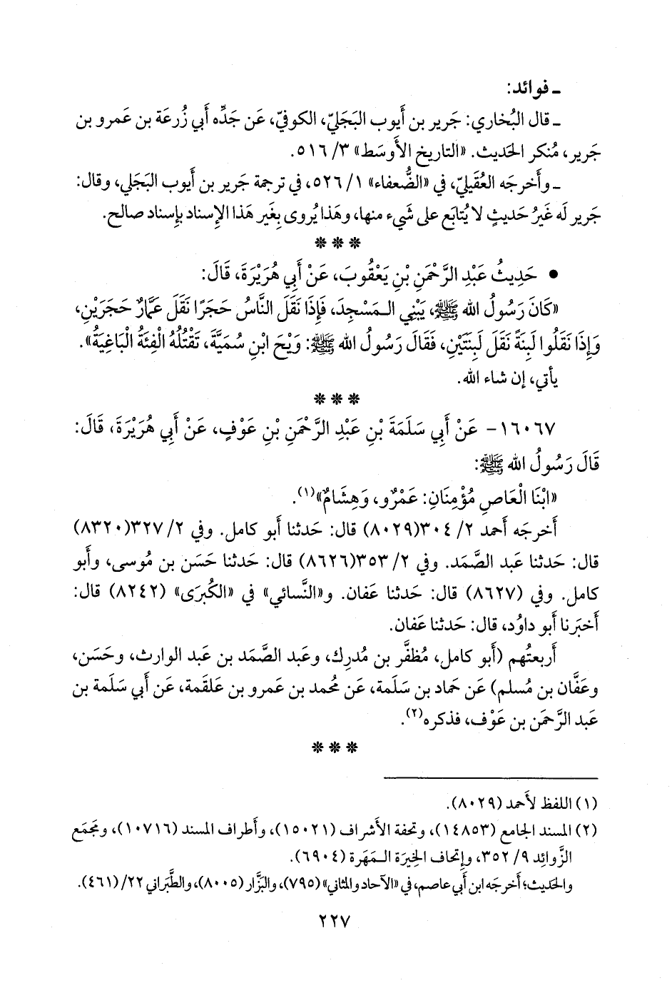 (¬٢) المسند الجامع (١٤٨٥٣)، وتحفة الأشراف (١٥٠٢١)، وأطراف المسند (١٠٧١٦)، ومَجمَع الزوائد ٩/ ٣٥٢، وإتحاف الخِيرَة المَهَرة (٦٩٠٤).