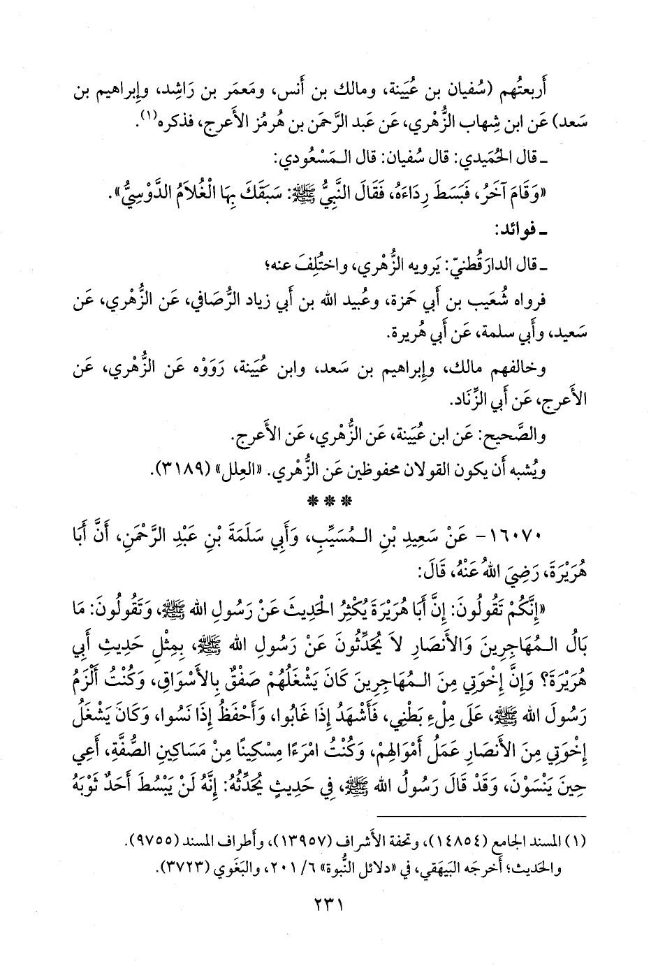 ١٦٠٧٠ - عن سعيد بن المُسَيب، وأبي سلمة بن عبد الرَّحمَن، أن أبا هريرة، رضي الله عنه، قال: