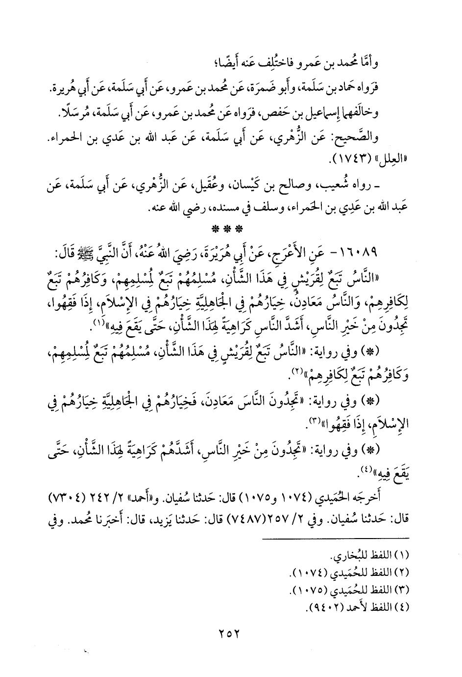 أربعتهم (سفيان بن عُيينة، ومحمد بن إسحاق، والمغيرة، وشعيب بن أبي حمزة) عن أبي الزناد عبد الله بن ذكوان، عن عبد الرَّحمَن بن هُرمُز الأعرج، فذكره (¬١).