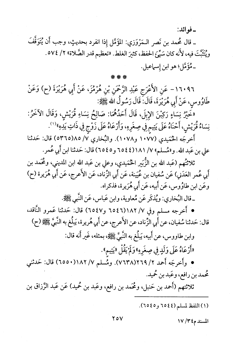 (¬٢) المسند الجامع (١٤٨٧٢)، وتحفة الأشراف (١٣٥٢٥ و ١٣٦٨١ و ١٣٧٥٣)، وأطراف المسند (٩٤٩٢ و ٩٨٩٩).