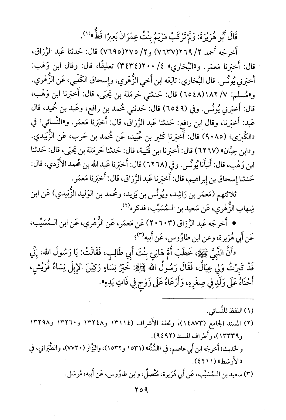 ثلاثتهم (مَعمَر بن راشد، ويونس بن يزيد، ومحمد بن الوليد الزبيدي) عن ابن شهاب الزُّهْري، عن سعيد بن المُسَيب، فذكره (¬١).