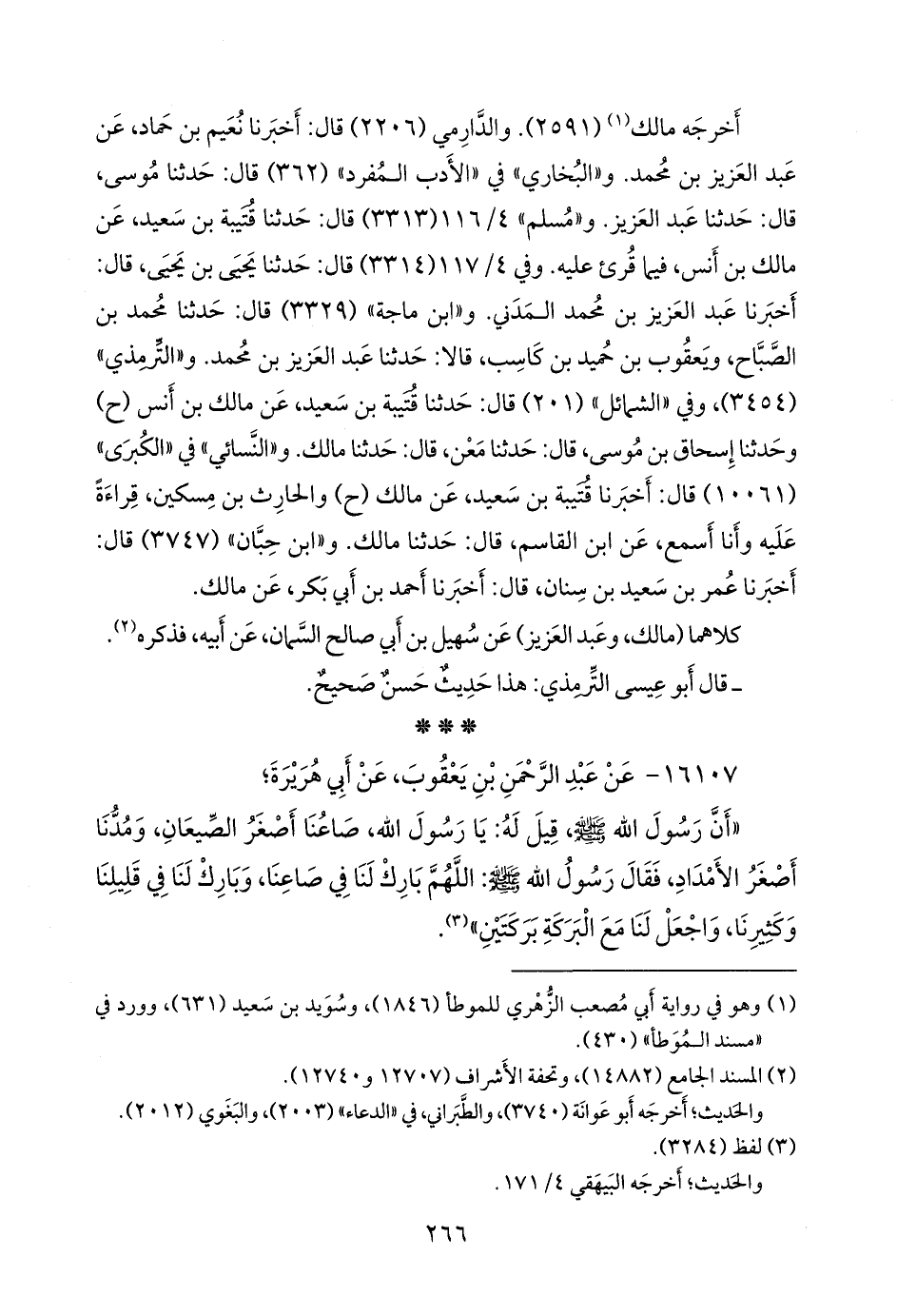 أخرجه مالك (¬١) (٢٥٩١). والدَّارِمي (٢٢٠٦) قال: أخبرنا نُعيم بن حماد، عن عبد العزيز بن محمد. و «البخاري» في «الأدب المفرد» (٣٦٢) قال: حدثنا موسى، قال: حدثنا عبد العزيز. و «مسلم» ٤/ ١١٦ (٣٣١٣) قال: حدثنا قتيبة بن سعيد، عن مالك بن أنس، فيما قرئ عليه. وفي ٤/ ١١٧ (٣٣١٤) قال: حدثنا يحيى بن يحيى، قال: أخبرنا عبد العزيز بن محمد المدني. و «ابن ماجة» (٣٣٢٩) قال: حدثنا محمد بن الصباح، ويعقوب بن حميد بن كاسب، قالا: حدثنا عبد العزيز بن محمد. و «التِّرمِذي» (٣٤٥٤)، وفي «الشمائل» (٢٠١) قال: حدثنا قتيبة بن سعيد، عن مالك بن أَنس (ح) وحدثنا إسحاق بن موسى، قال: حدثنا مَعْن، قال: حدثنا مالك. و «النَّسَائي» في «الكبرى» (١٠٠٦١) قال: أخبرنا قتيبة بن سعيد، عن مالك (ح) والحارث بن مسكين، قراءة عليه وأنا أسمع، عن ابن القاسم، قال: حدثنا مالك. و «ابن حِبَّان» (٣٧٤٧) قال: أخبرنا عمر بن سعيد بن سنان، قال: أخبرنا أحمد بن أَبي بكر، عن مالك.