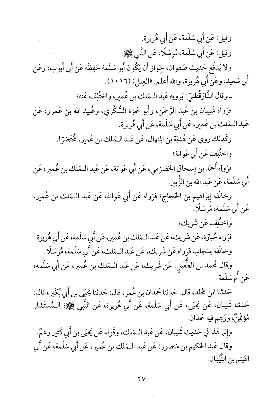 حدثنا ابن مخلد، قال: حدثنا حمدان بن عمر، قال: حدثنا يحيى بن أبي بكير، قال: حدثنا شَيبان، عن يحيى، عن أبي سلمة، عن أبي هريرة، عن النبي صَلى الله عَليه وسَلم؛ المستشار مؤتمن، ووهم فيه حمدان.