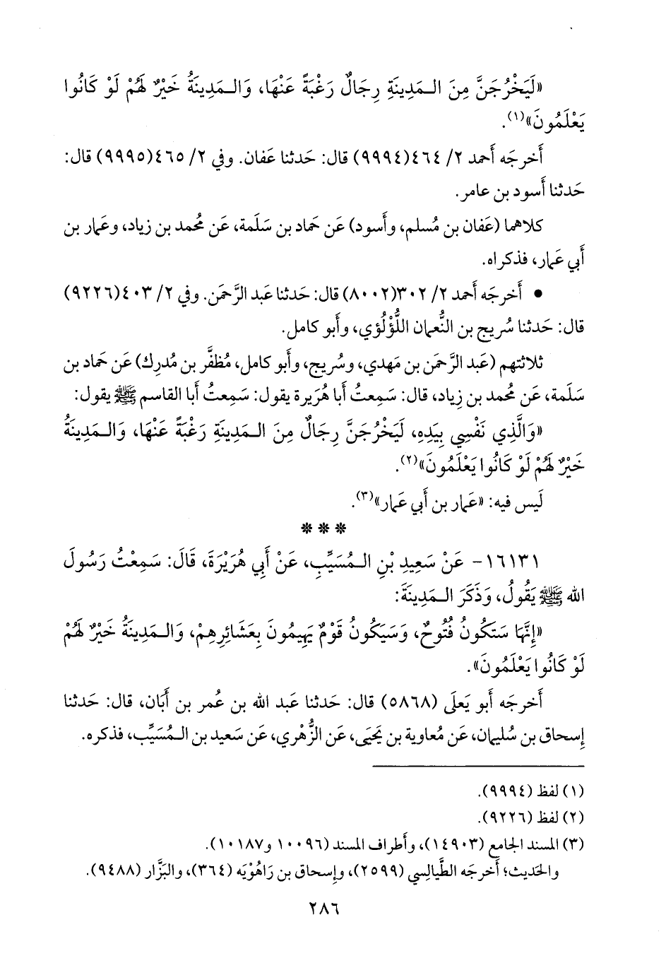 ١٦١٣١ - عن سعيد بن المُسَيب، عن أبي هريرة، قال: سمعت رسول الله صَلى الله عَليه وسَلم يقول، وذكر المدينة: