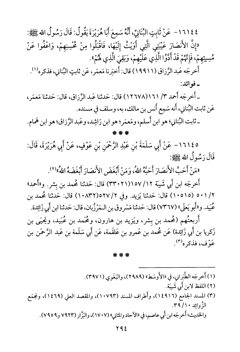 - ثابت البُنَاني؛ هو ابن أسلم، ومعمر؛ هو ابن راشد، وعبد الرزاق؛ هو ابن همام.