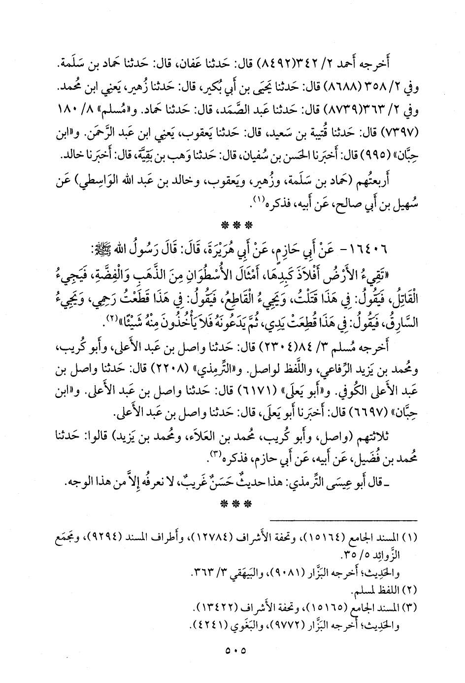 ١٦٤٠٦ - عن أبي حازم، عن أبي هريرة، قال: قال رسول الله صَلى الله عَليه وسَلم: