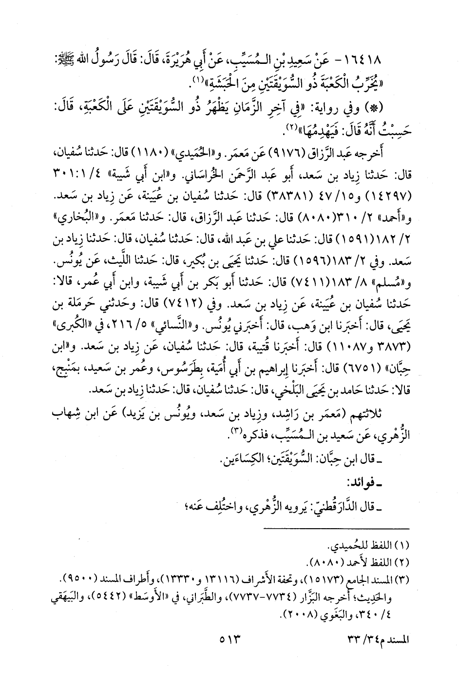(¬٣) المسند الجامع (١٥١٧٣)، وتحفة الأشراف (١٣١١٦ و ١٣٣٣٠)، وأطراف المسند (٩٥٠٠).