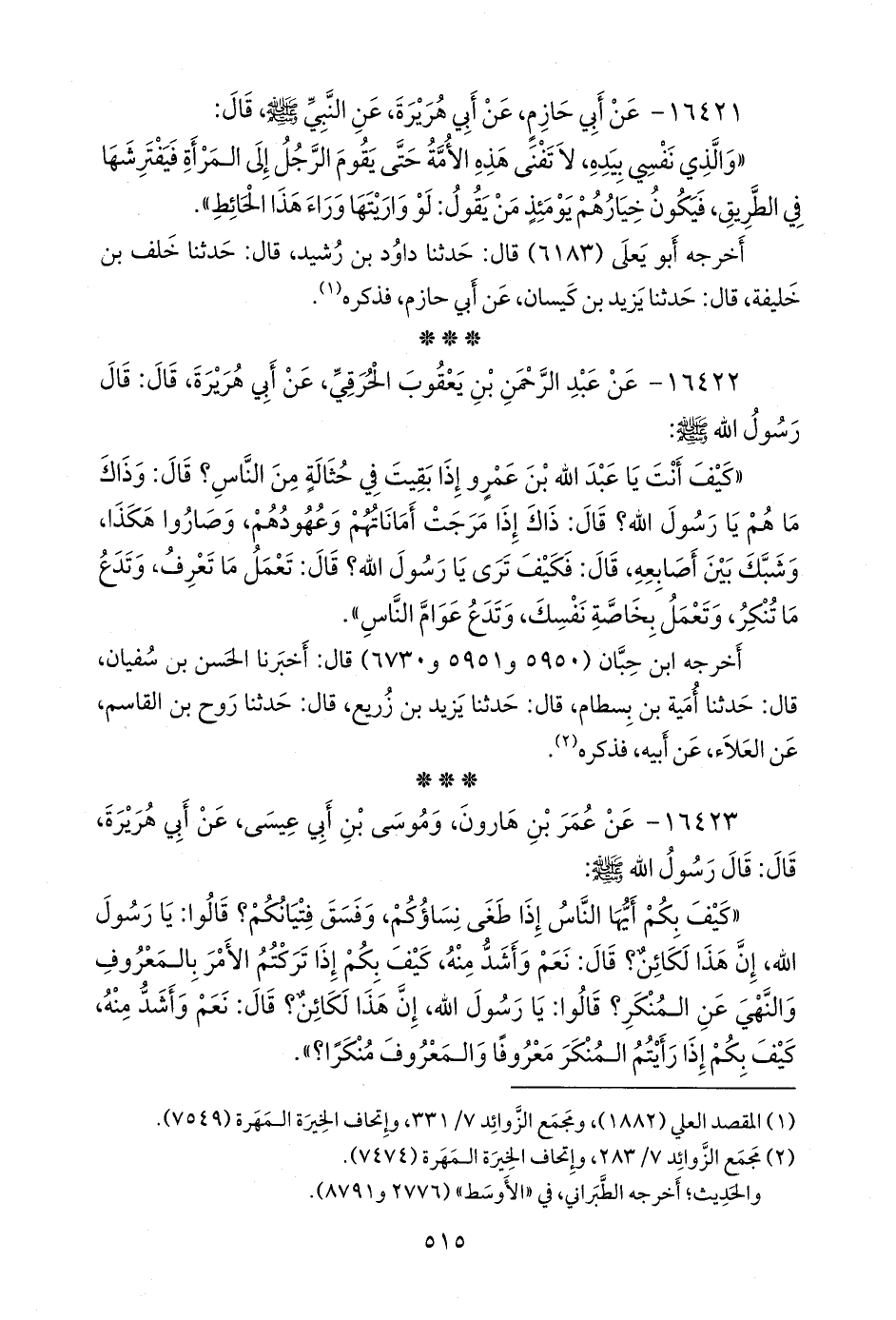 (¬١) مَجمَع الزوائد ٧/ ٢٨٣، وإتحاف الخِيرَة المَهَرة (٧٤٧٤).