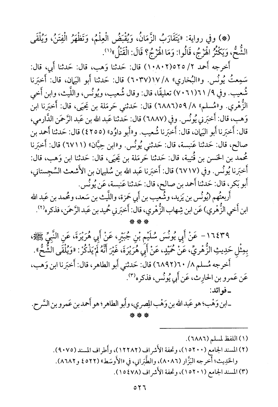 - ابن وهب؛ هو عبد الله بن وهب المصري، وأَبو الطاهر؛ هو أحمد بن عَمرو بن السَّرح.