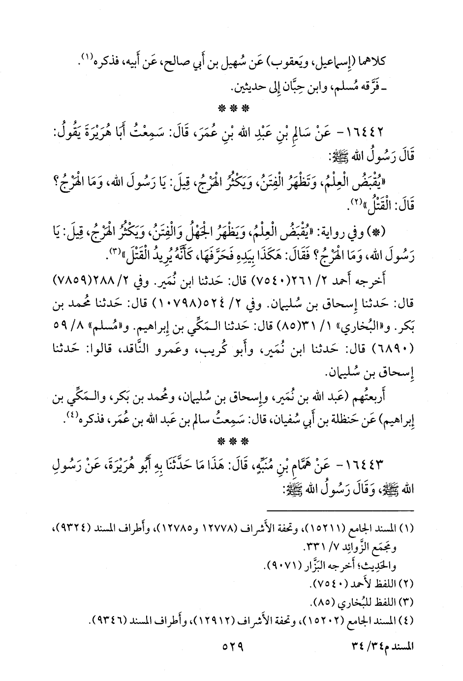 (¬٢) المسند الجامع (١٥٢٠٤)، وتحفة الأشراف (١٤٧٦٧)، وأطراف المسند (١٠٣٨٥).