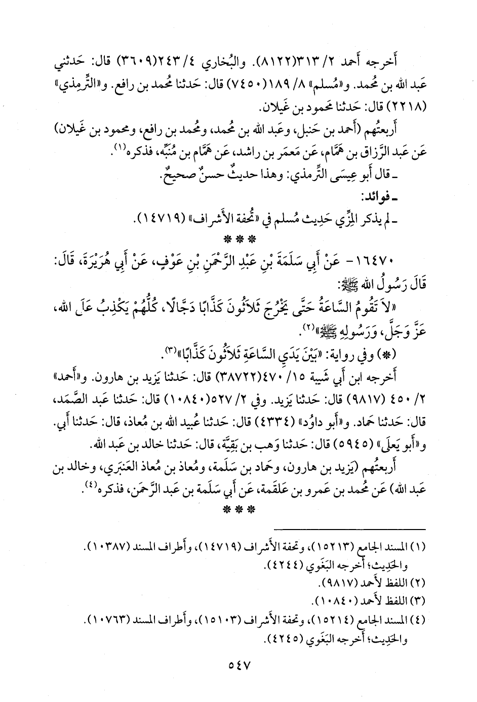 (¬٣) المسند الجامع (١٥٢١٤)، وتحفة الأشراف (١٥١٠٣)، وأطراف المسند (١٠٧٦٣).