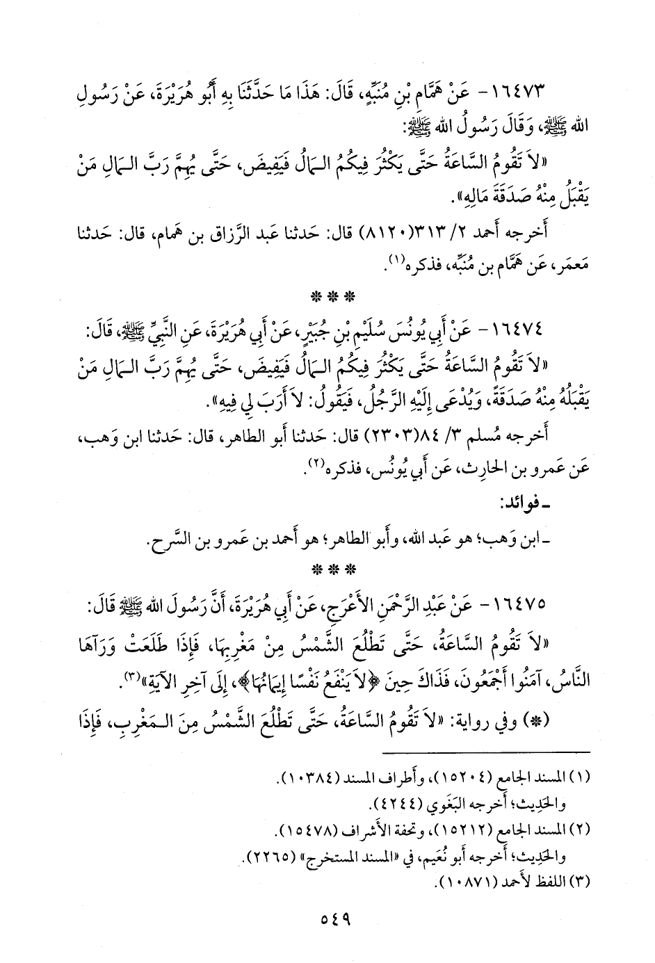(¬٣) المسند الجامع (١٥١٨١)، وتحفة الأشراف (١٣٦٥٩ و ١٣٧٤٧ و ١٣٧٤٩)، وأطراف المسند (٩٧٩٥).