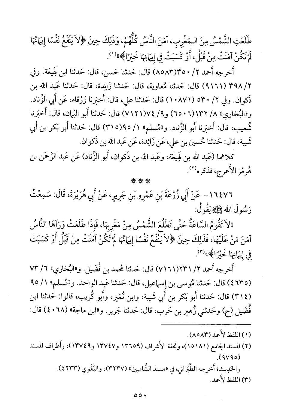 (¬٢) المسند الجامع (١٥١٩٣)، وتحفة الأشراف (١٤٨٩٧)، وأطراف المسند (١٠٦٠٣).