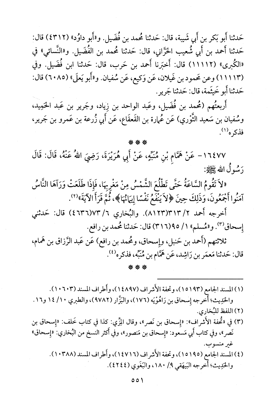 ١٦٤٧٧ - عن همام بن مُنَبِّه، عن أبي هريرة، رضي الله عنه، قال: قال رسول الله صَلى الله عَليه وسَلم: