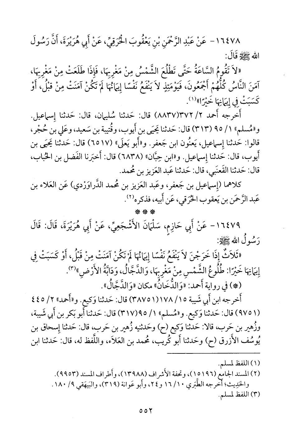 (¬٢) المسند الجامع (١٥١٩٤)، وتحفة الأشراف (١٣٤٢١)، وأطراف المسند (٩٥٩٧).