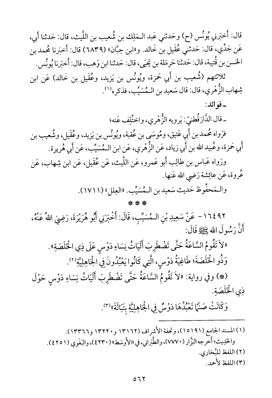 ١٦٤٩٢ - عن سعيد بن المُسَيب، قال: أخبرني أَبو هريرة، رضي الله عنه، أن رسول الله صَلى الله عَليه وسَلم قال: