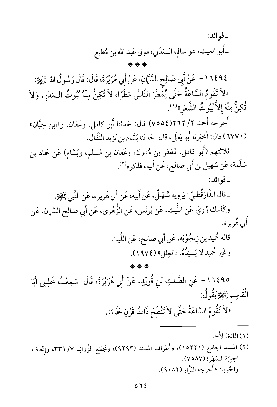 (¬٢) المسند الجامع (١٥٢٢١)، وأطراف المسند (٩٢٩٣)، ومَجمَع الزوائد ٧/ ٣٣١، وإتحاف الخِيرَة المَهَرة (٧٥٨٧).