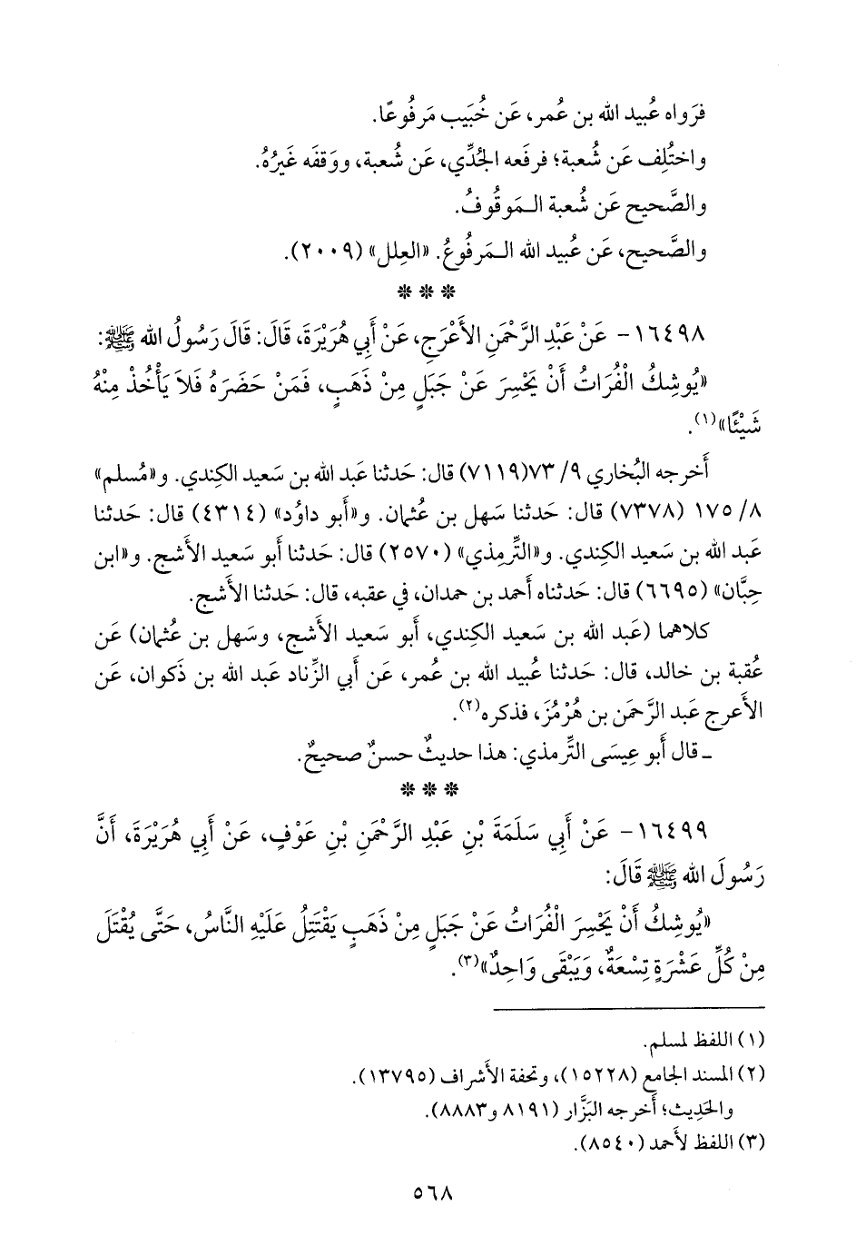 (¬٣) المسند الجامع (١٥٢٢٩)، وتحفة الأشراف (١٥٠٩٨)، وأطراف المسند (١٠٦٦٢).