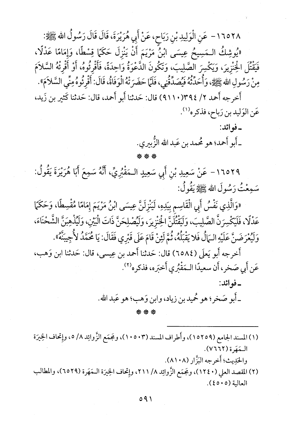 (¬١) المسند الجامع (١٥٢٥٩)، وأطراف المسند (١٠٥٠٣)، ومَجمَع الزوائد ٨/ ٥، وإتحاف الخِيرَة المَهَرة (٧٦٦٢).