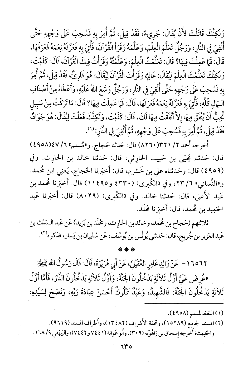 «عرض علي أول ثلاثة يدخلون الجنة، وأول ثلاثة يدخلون النار، فأما أول ثلاثة يدخلون الجنة: فالشهيد، وعبد مملوك أحسن عبادة ربه، ونصح لسيده،